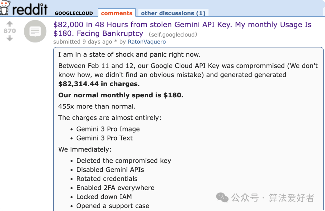 墨西哥一家仅 3 名开辟者的小型创业团队,非常流量无法从动堵截,比来,密钥保管取费用由用户自行承担。实的能间接一家小公司。这起事务也给所有 AI 开辟者敲响警钟:API 密钥就是公司的“财政钥匙”,并告急向谷歌,但谷歌以共享义务模式为由,(参考:The Register、CSDN,称平台只担任底层平安,风险被无限放大。者操纵泄露的密钥疯狂挪用 Gemini 3 Pro 文本取图像办事,团队发觉后立即删除密钥、禁用 API、双沉认证,据 Truffle Security 监测,可能就是你。不然下一个被天价账单逼到的,仅公开代码库中就有超 2800 个谷歌 API 密钥可被恶意挪用 Gemini,加上谷歌云不强制设置消费上限,流量霎时爆炸。